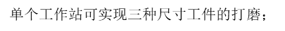 1. 单个工作站可实现三种尺寸工件的打磨;