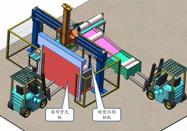 节拍<60s,从视觉系统拍照定位开始,到棒料输送至V型辊道的取料段等待被取走。