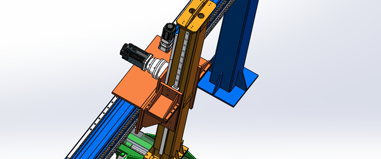 上下料机械手Z轴采用单轴布置,采用直线导轨运动,采用单电机驱动,齿轮齿条传动。