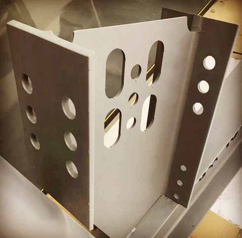 本设备为自动化数控切割机。切割机械手具有1把火焰或等离子切割割炬,多轴控制系统,可根据工艺要求,针对型钢腹板和翼板进行切断,还可以切割多种几何形状的工艺孔,能有效保证型钢切割的切割精度和位置精度。型钢自由放置在固定切割平台或移动辊道上,切割方便,加工效率高。设计采用型钢自动上下料机械手,可对型钢切割前进行自动上料,同时对切割后的型钢进行自动下料堆放,大大提高了加工效率。该设备广泛应用于建筑钢结构制造、机械加工等行业,部分加工工件见下图。