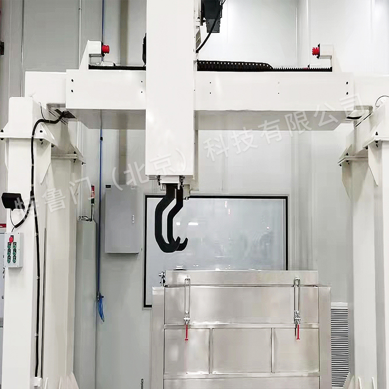利用桁架机械手抓取AGV上的卷料放置到密封柜,桁架机械手兼容手动模式,并能监控到密封柜内腔对接位置,支持人工可视化对接和有录像功能。