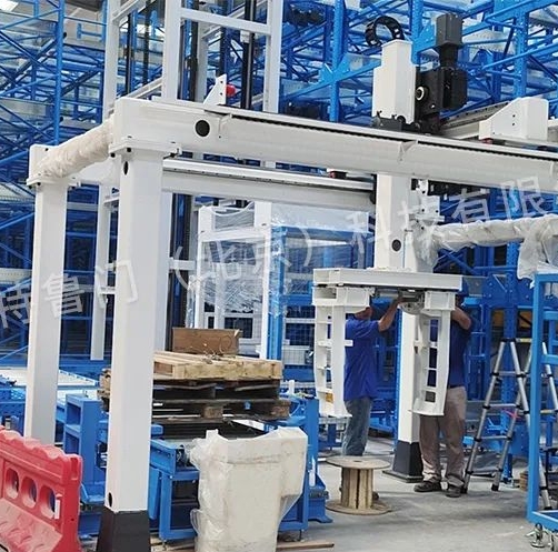 拆叠垛机械手是由特鲁门公司设计制造的,是单轴双立柱举升桁架机械手,可以将料桶上下搬运,实现料桶自动拆叠垛。设备主体结构采用Q235A钢材焊接,举升夹具定制,机械手可以一起提升托架和料桶,高速高效,运行稳定。