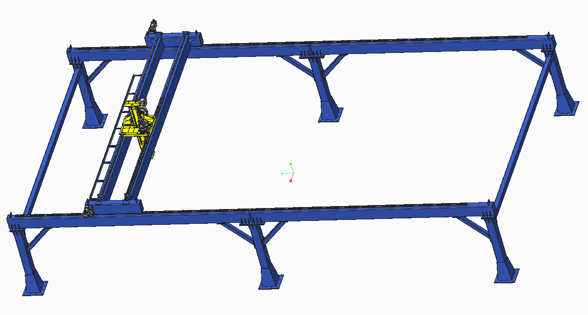 1、桁架机械手一:卷重约2吨,头部配备抓取部件,含X方向伺服横移轴,Z方向伺服升降轴,机械夹爪。
