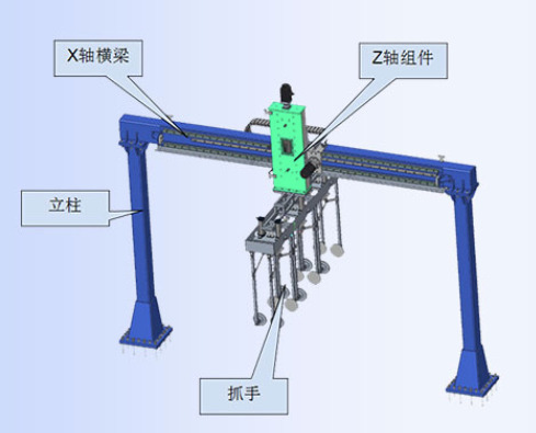 龙门桁架机器人产品总体功能是帮助客户解决各类物料搬运、码垛、装车、卸车,以及配合机床的上料、下料等工作,能够解决人工效率低下或者搬运风险高等问题,省时,省力,节约人工成本。