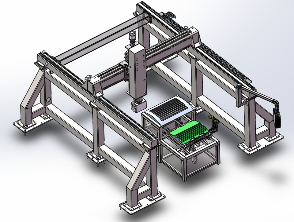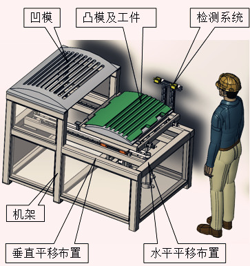本桁架机械手是由架体、开槽凹模、凸模定位装置、凸膜水平进给装置、凸模升降压紧装置、检测系统及电气控制系统组成。