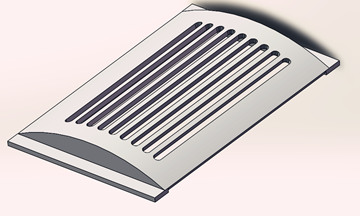 本五轴开槽机械手所开凹槽开橡胶表面板面,弧度公差在±0.3',半径公差在±0.05mm。所开凹槽表面光滑无裂纹,并对未开槽部分加以保护,特别是产品的前斜边、侧棱处干净、无污渍、无磕碰、掉角现象。