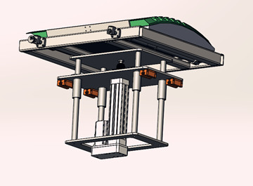 伺服电动推杆为动力,框架四导柱为导向,保证升降平稳,伺服电机为动力,保证升降位置准确,确保工件与凹凸模完全解除,进而保证加工孔深精度