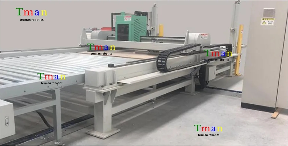 该桁架机械手XYZ轴采用传统坐标式行走方式,可以增加设备整体刚性,扩大工作范围,Z轴连接电主轴,对工件进行铣孔,设备前后端由滚筒输送线进行传输工件,整个过程实现无人化操作。