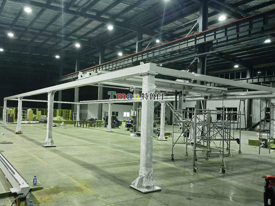 近日,特鲁门工作人员在车间进行自动拣选桁架机械手的安装调试工作。下图为安装现场: