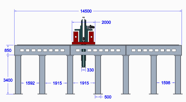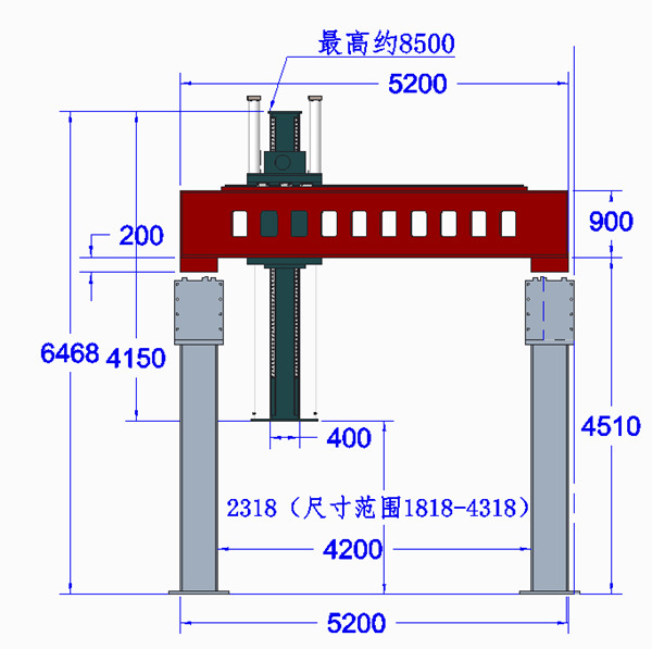 X轴、Y轴采用焊接箱型结构,抗弯性好,结构美观;立柱由方形钢管制作而成。