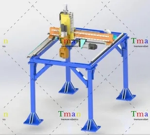 根据我公司在工业机器人领域多年的经验,结合现场生产实际需要,六轴桁架机械手采用传统机床与机器人手臂相结合的方式,XYZ轴采用传统坐标式行走方式,可以增加设备整体刚性,扩大工作范围,4、5、6轴采用机器人手臂式机构可以增加设备灵活性,多自由度,无死角。