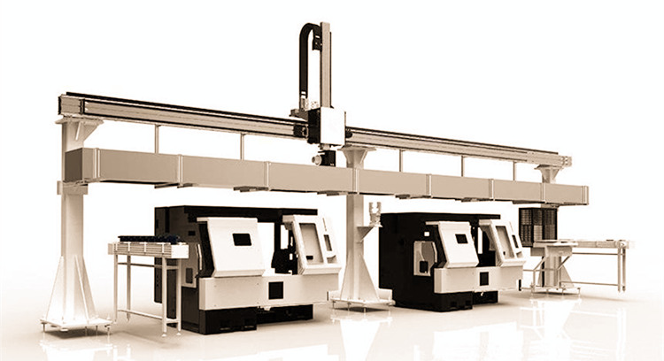 数控机床是一种装有程序控制系统的自动化机床,能够根据已编好的程序,对机床发出指令并加工零件,在自动化生产中能实现生产过程自动化。高度柔性、加工精度高、加工质量稳定、可靠性、生产率高这是数控机床的基本特性。不同机型可以提供不同的工艺需求,能加工形状复杂的零件。桁架机械手通过控制系统对各种输入信号的分析处理,对各个输出元件下达执行命令,完成整个运动轨迹的过程,利用机械手的抓取功能实现物流方式自动化,上下料桁架机械手采用模块化设计,每一个模块都是一个独立的系统单元结构,可以进行各种形式的组合,组成多台联机的生产线。
